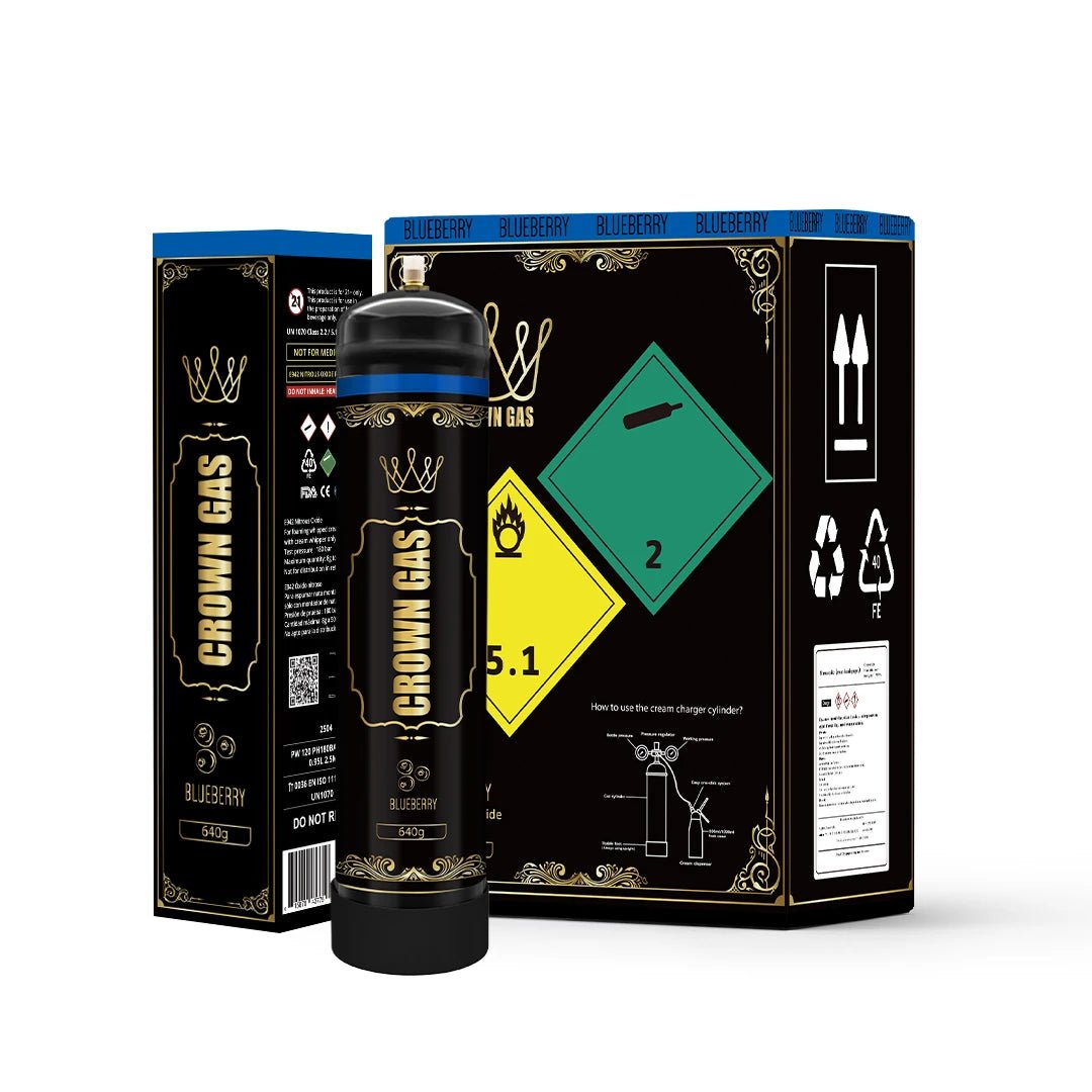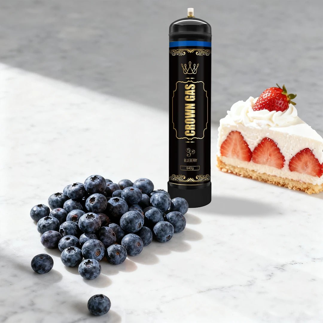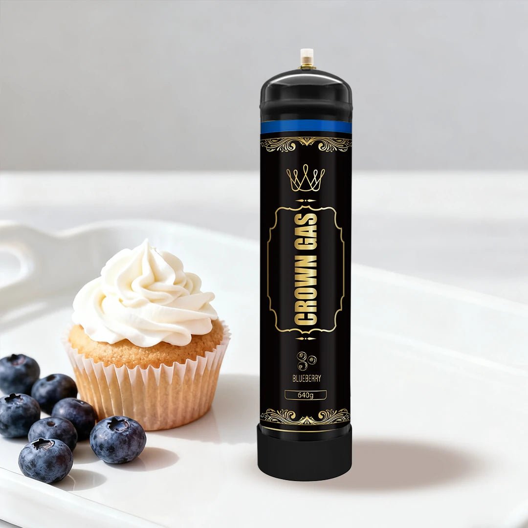 Maximize your culinary creations with the large-capacity Crown Gas Blueberry Flavor Cream Can (640g). Premium stainless steel charger filled with food-grade nitrous oxide for smooth, blueberry-scented whipped cream.