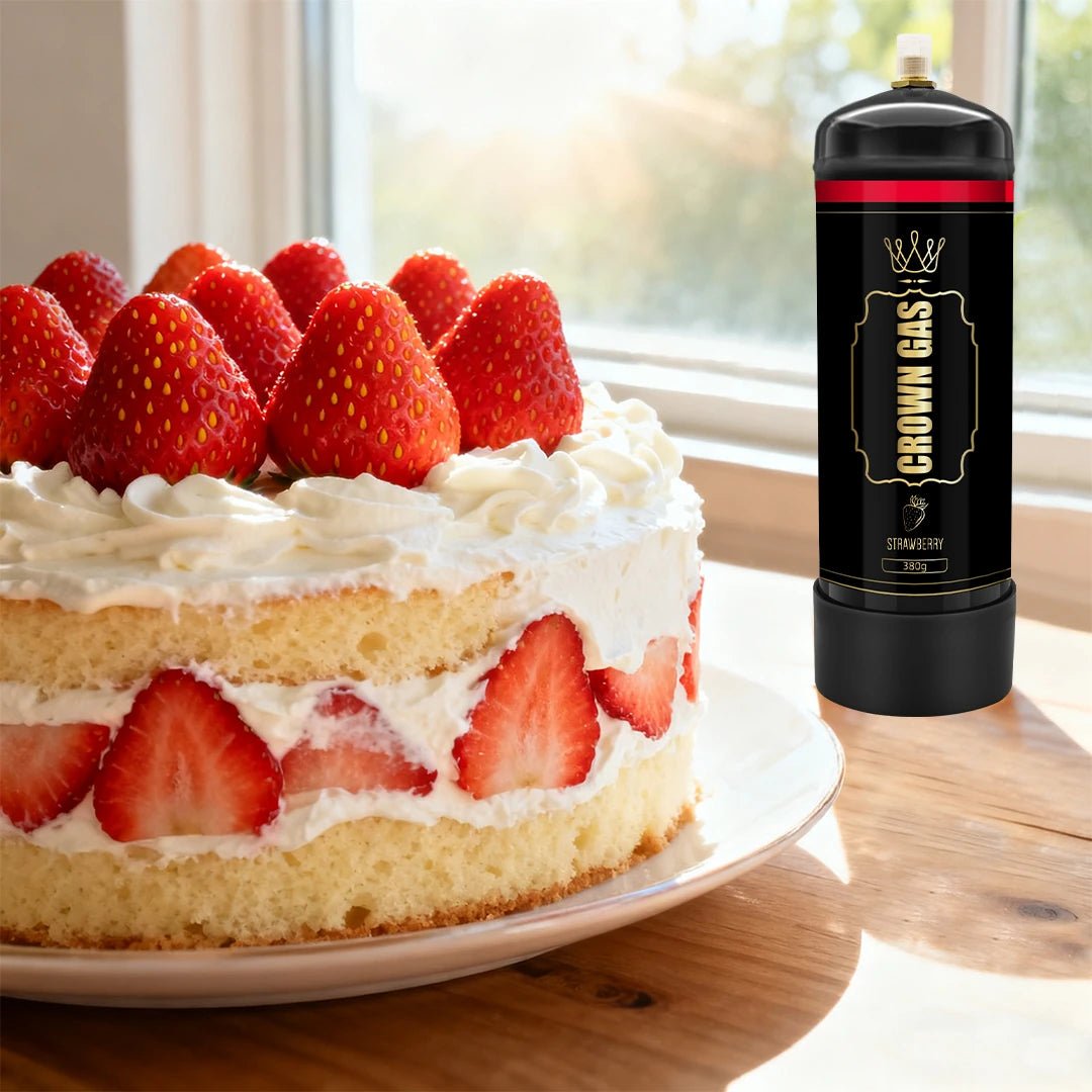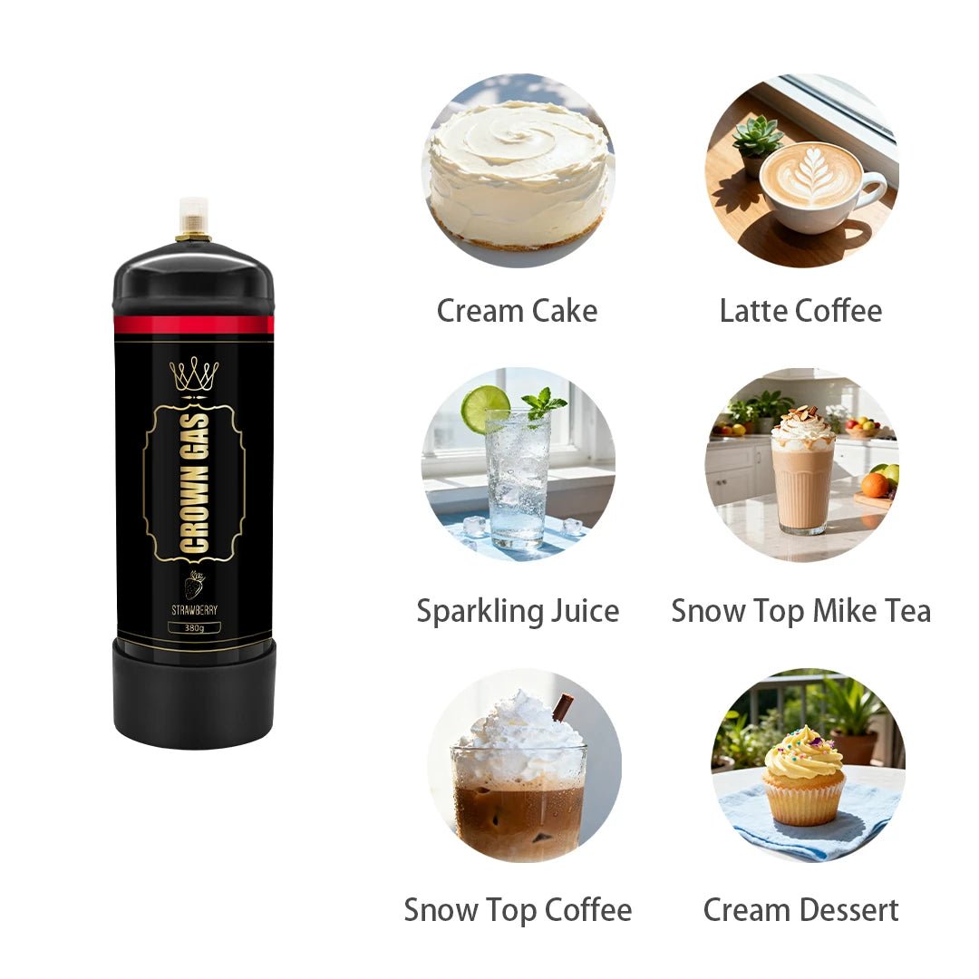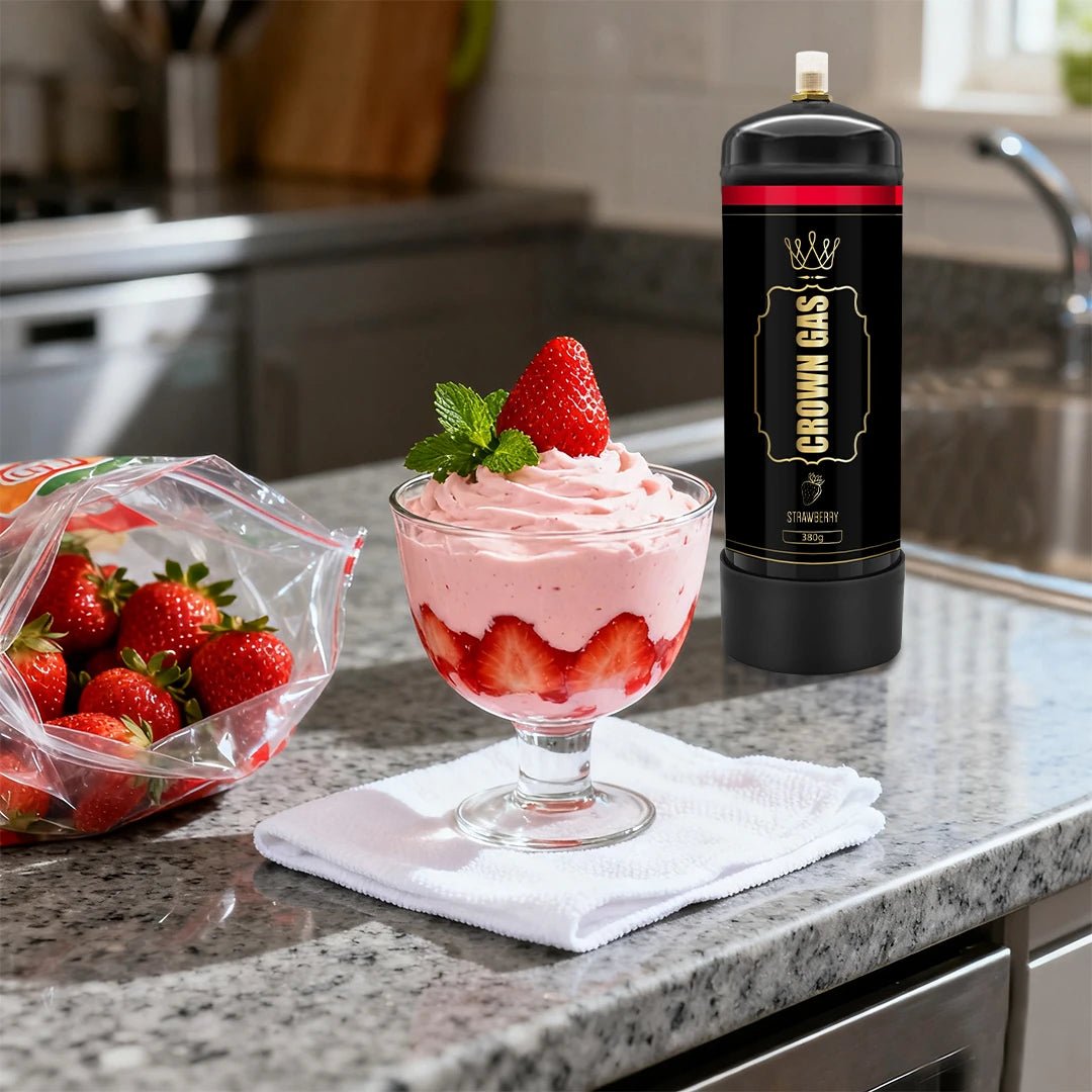 Create delicious treats with the Crown Gas Strawberry Flavor Cream Can (380g). High-quality stainless steel charger containing food-grade nitrous oxide for smooth, strawberry-infused whipped cream.
