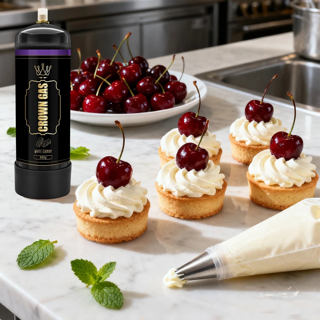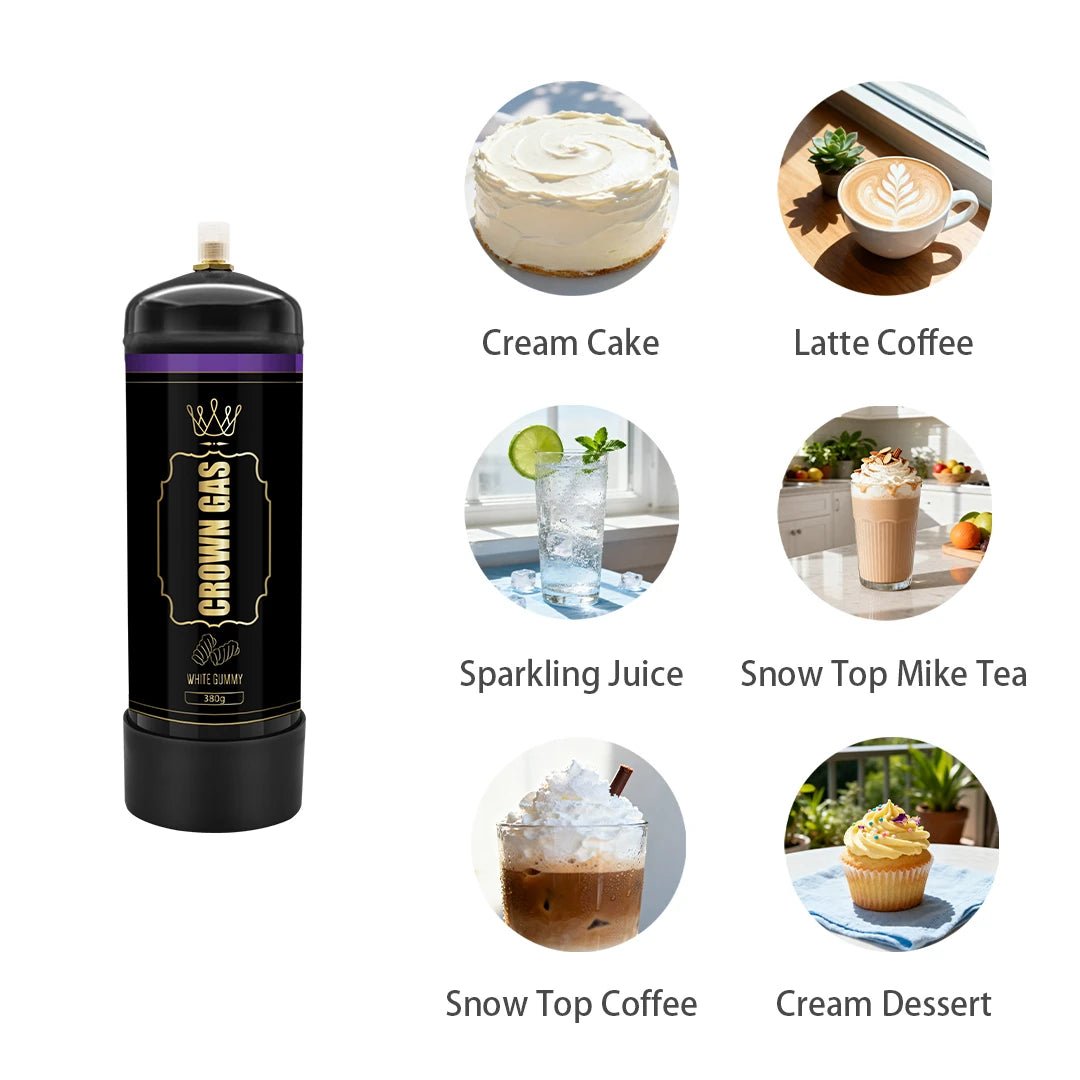 Add a sweet touch to your creations with the Crown Gas White Gummy Flavor Cream Can (380g). Premium stainless steel charger containing food-grade nitrous oxide for smooth, candy-inspired whipped cream.